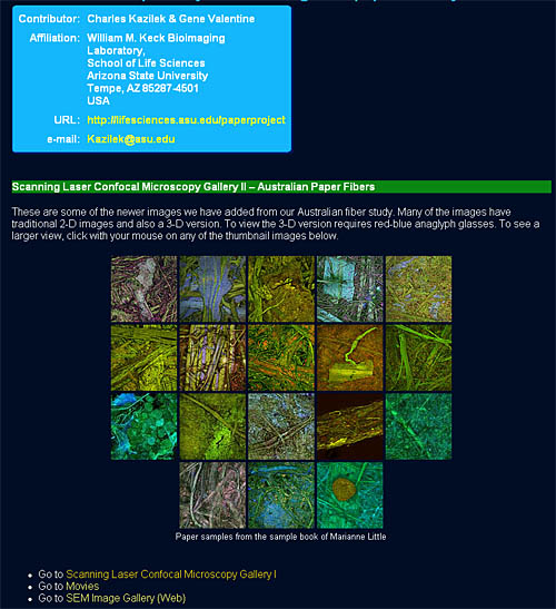 | Microscopy II | CD Image Analysis & 3D Reconstruction by Charles Kazilek, Gene Valentine, and Dennis McDaniel Below are just a few of the screen shots from this elegantly produced CD. The content from the Paper Project was such a success that we will be back for the next volume of the series.